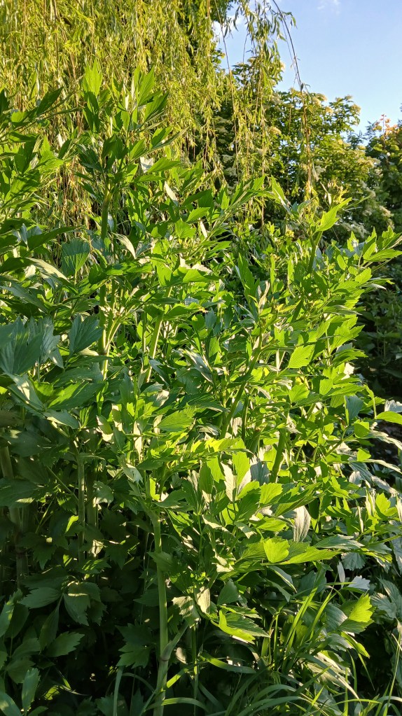 A lestyán is hatalmasra növekedett, jellegzetes illata beborítja a kert egy részét és dúsan tör egyre magasabbra és magasabbra. A levelét fűszerként használjuk levesekbe, főételekhez.