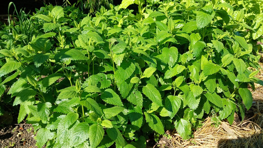 A citromfű gyönyörűen megnőtt, szedhető állapotban van már. Finom, citromos ízű teája – idegnyugtató hatása miatt is 🙂 – szinte minden teakeverékünk alkotóeleme.