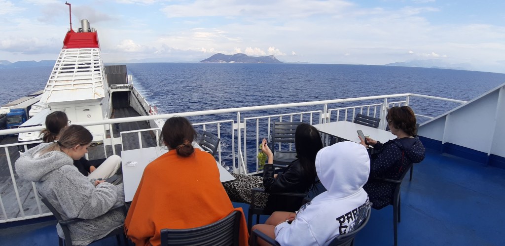 A hosszú utazási folyamatban a leginkább új és izgalmas élmény a 16 órás, éjszakai komp út volt Olaszország és Görögország között, amitől többen tartottunk is, és amiben kellmesen csalódtunk mindannyian, illetve sikerült leküzdeni az ezzel kapcsolatos félelmeinket.