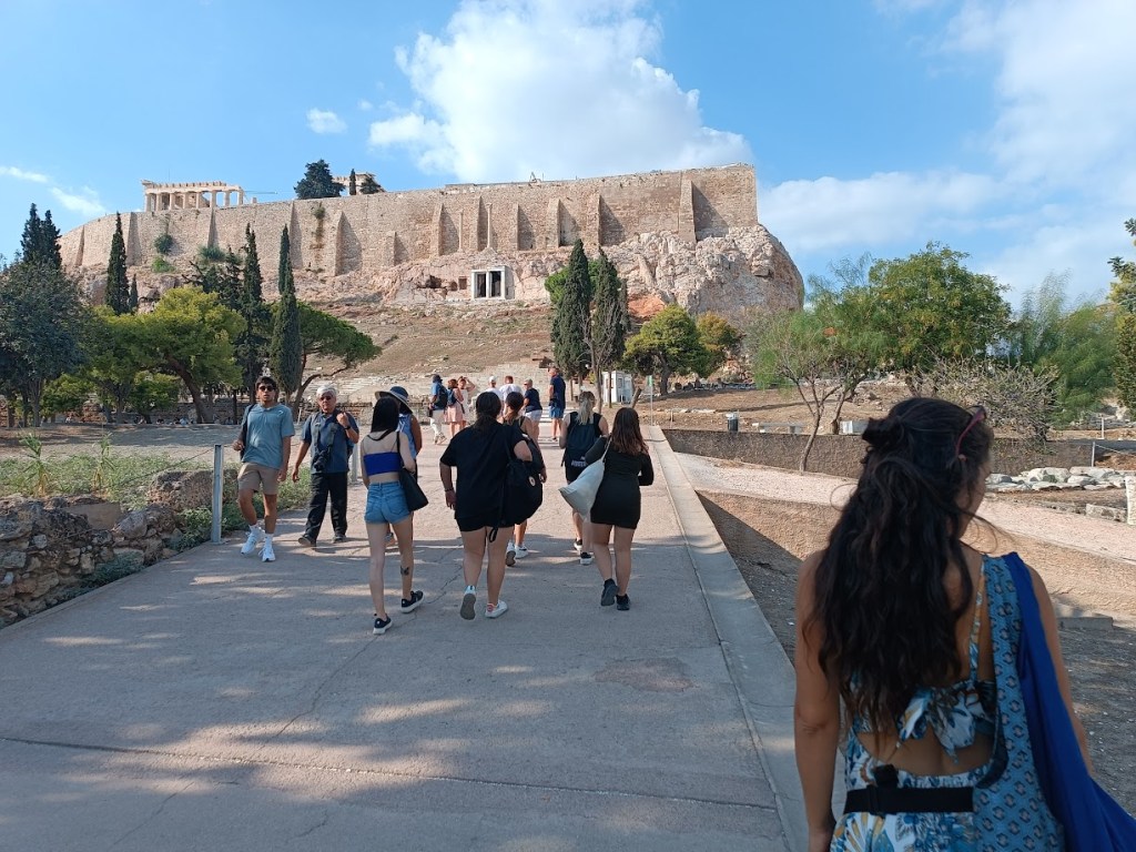 Az athéni tartózkodás alatt csodálatos időnk volt, jó volt kicsit visszacsöppenni a nyárba így szeptemberben. Nagyon sok helyi látványosságot néztünk meg, az ókori romok között járkálva elképzeltük a múltat és a történelem megelevenedett előttünk. Megfigyeltük Athén utcáin a sok-sok különböző kultúrájú embert, a város zsúfolt, mert telis-tele van turistákkal és helyiekkel, de ebben a nagy forgatagban is el tudtunk igazodni, a végére már egészen jól megismertük a helyi kölekedést is. Finomakat ettünk és megkóstoltunk egy pár görög specialitást is pl. görög salátát, tzatzikit, dolmadest, spenótos és sajtos pitét, szuvlakit, gyrost, baklavát, muszakát, gemistát… Természetesen nem hagyhattuk ki a tengerpartot és a fürdőzést sem, a víz nagyon kellemes volt a nagy melegben. A görög vidéket is megnéztük, amikor egyik nap elmentünk a Poszeidon templomhoz, a Sounion-fokra, itt gyönyörű természeti értékek tárultak a szemünk elé, a tenger kékje a sziklás hegyekkel és a naplementével csodaszép látványt nyújtott!