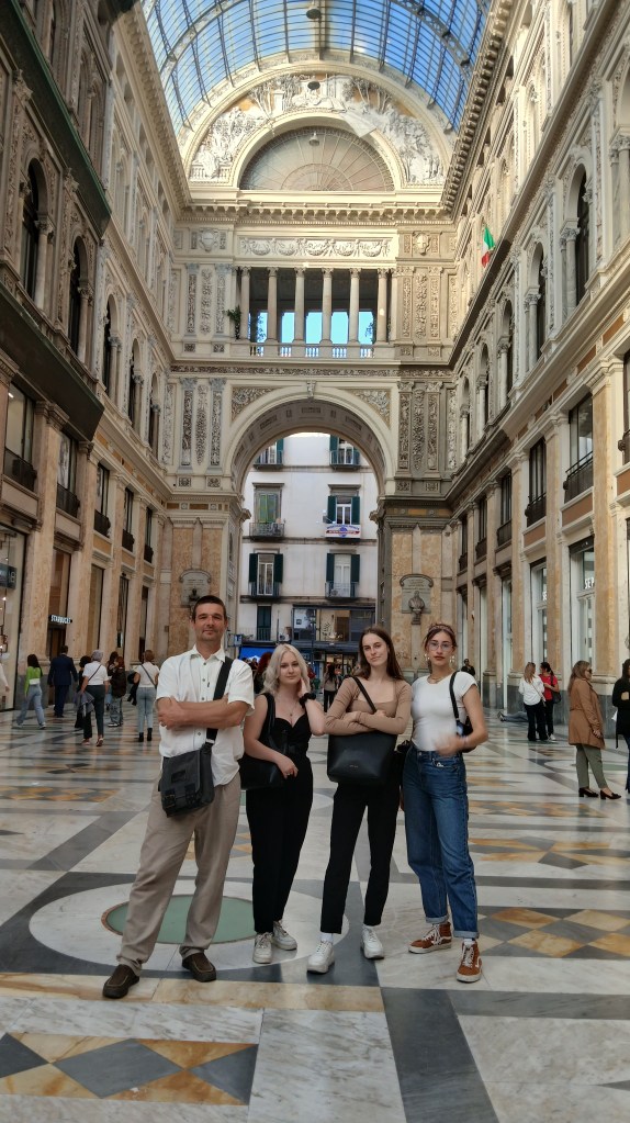 Itt is minden napra jutott egy-egy nagy séta és a látnivalókból nem volt hiány. Több világörökségi helyszínt is meglátogattunk: Pompeii letűnt városában barangoltunk, amit a Vezúv i.sz. 79-ben a földfelszín alá temetett; megcsodáltuk a gyönyörűszép Amalfi-parton Positano meredek utcáit és tengerpartját, ahol még fürödtünk is a tengerben. Nápoly vársosában is eltöltöttünk egy napot, itt viszont elég vegyes érzésekkel fogadtuk a nagy tömeget, szűk utcákat, hangos motorokat és tolakodó árusokat a történelmi városközpontban. Mindenesetre tapasztalásnak jó volt minden helyszín, az olasz emberek segítőkészségét és kedvességét pedig szívesen átvennénk a magyar gyakorlatba is!